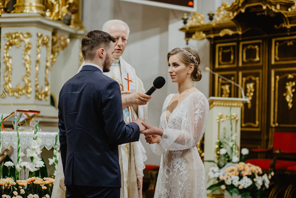 Ceremonia zaślubin odbyła się w kościele, gdzie para młoda złożyła przysięgę miłości i wierności. To była chwila pełna wzruszeń – spojrzenia wymieniane przez Magdę i Darka mówiły więcej niż jakiekolwiek słowa. Cała ceremonia była przepojona uczuciem, które towarzyszyło im przez cały dzień. Ich wzajemne uczucie było namacalne, a każda minuta spędzona na wspólnej drodze stawała się coraz bardziej niepowtarzalna.